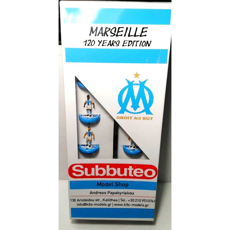 Subbuteo Andrew Table Soccer Olympique De Marseille 120 Years Centenary kit on WSB Professional bases