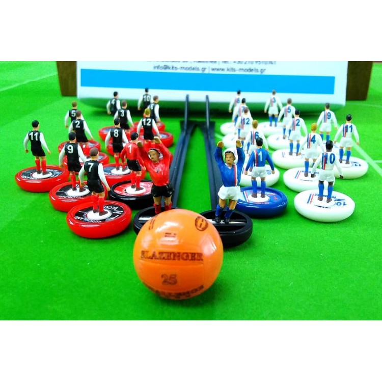 Subbuteo Andrew Table Soccer Escape to Victory motion picture with allies and Germans and a beautiful box set of the game. Comes to you on Aeolus Pro Bases or WSB Pro Bases