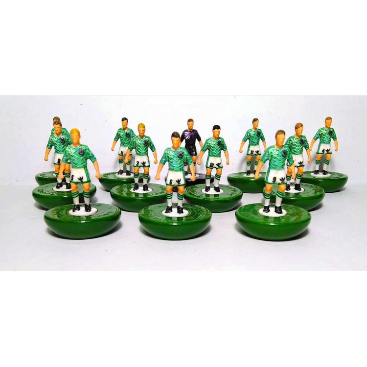 Subbuteo Andrew Table Soccer Germany 1988 away kit on classic Hasbro bases
