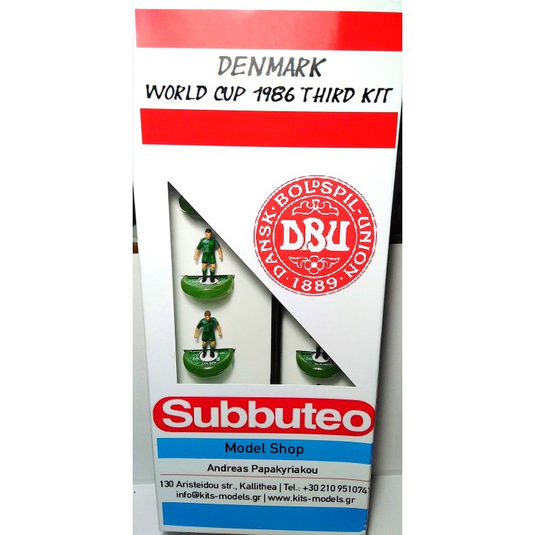 Subbuteo Andrew Table Soccer Denmark 3rd kit 1986 World Cup Team on WSB Professional bases